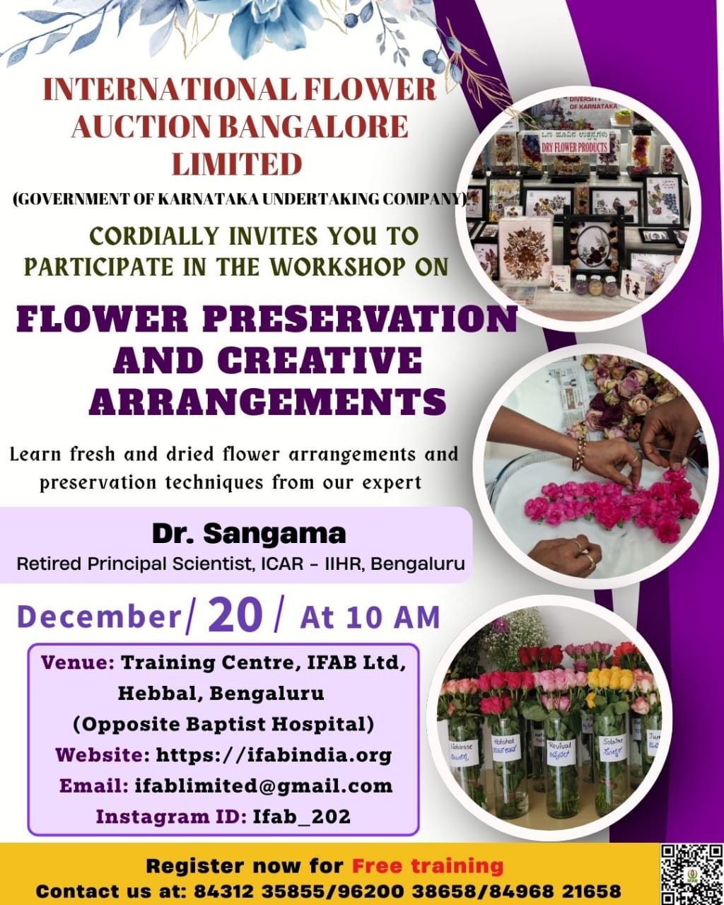 Work Shop on Flower Preservation & Creative Arrangements By IFAB Posted December 17, 2025 In Big Garden Work Shop on Flower Preservation & Creative Arrangements2025-12-172025-12-17https://ifabindia.org/wp-content/uploads/2019/05/logo.jpgIFAB-International Flower Auction Bangalorehttps://ifabindia.org/wp-content/uploads/2019/05/logo.jpg200px200px 0 whatsapp-image-2025-12-17-at-12.33.59Download IFAB Recent PostsWork Shop on Flower Preservation & Creative ArrangementsWorkshop on Flower Preservation & Value AdditionLISIYANTHUS SPRING FESTIVAL 2025 Leave a Comment Cancel reply Save my name, email, and website in this browser for the next time I comment.